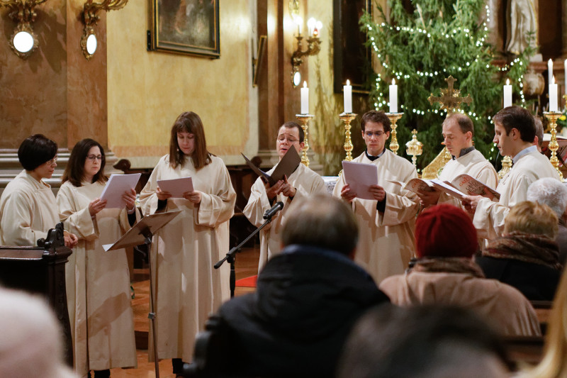 The members of the school are music lovers, music teachers, and musicians who contribute to the beauty of the liturgy with their service as pre-singers. The members of the school sing at the Sunday mass and vespers, which begin at 6:30 p.m., as well as at the liturgical events of church holidays.