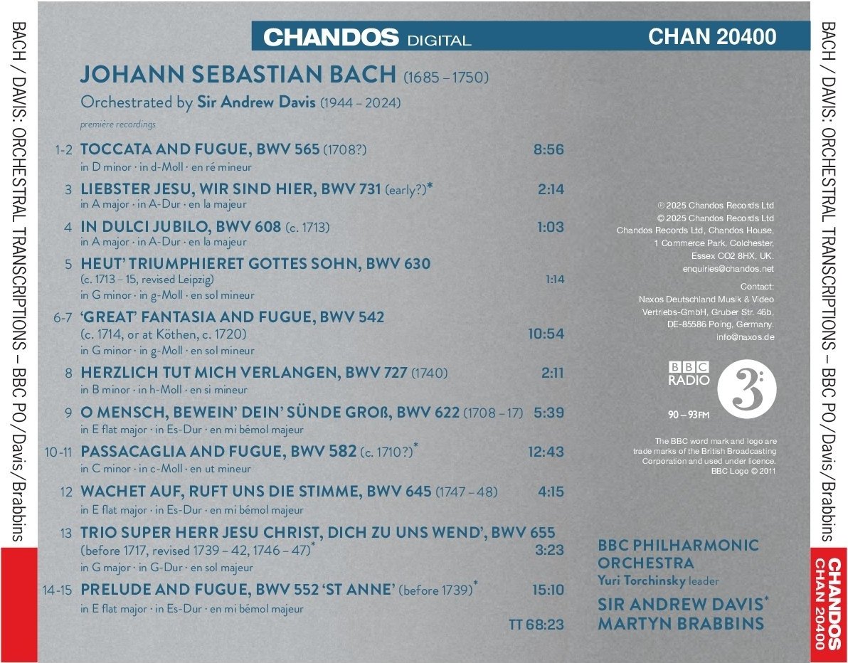 10-11. Bach-A. Davis: Passacaglia & Fugue in C minor, BWV 582, arranged for orchestra * [12:43]