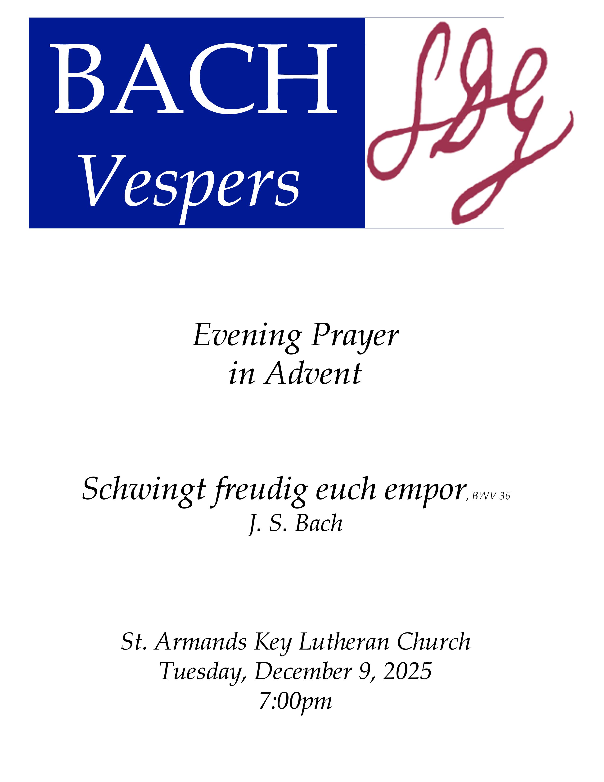 Sunday Bach Vespers - “Schwingt freudig euch empor” (BWV 36) by J.S. Bach |