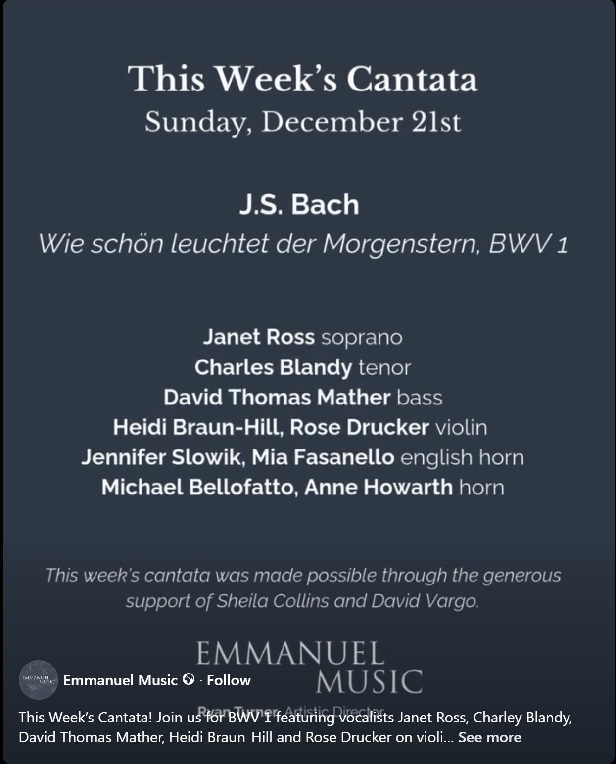Source: Emmanuel Music: 2025/2026 Cantata Schedule
