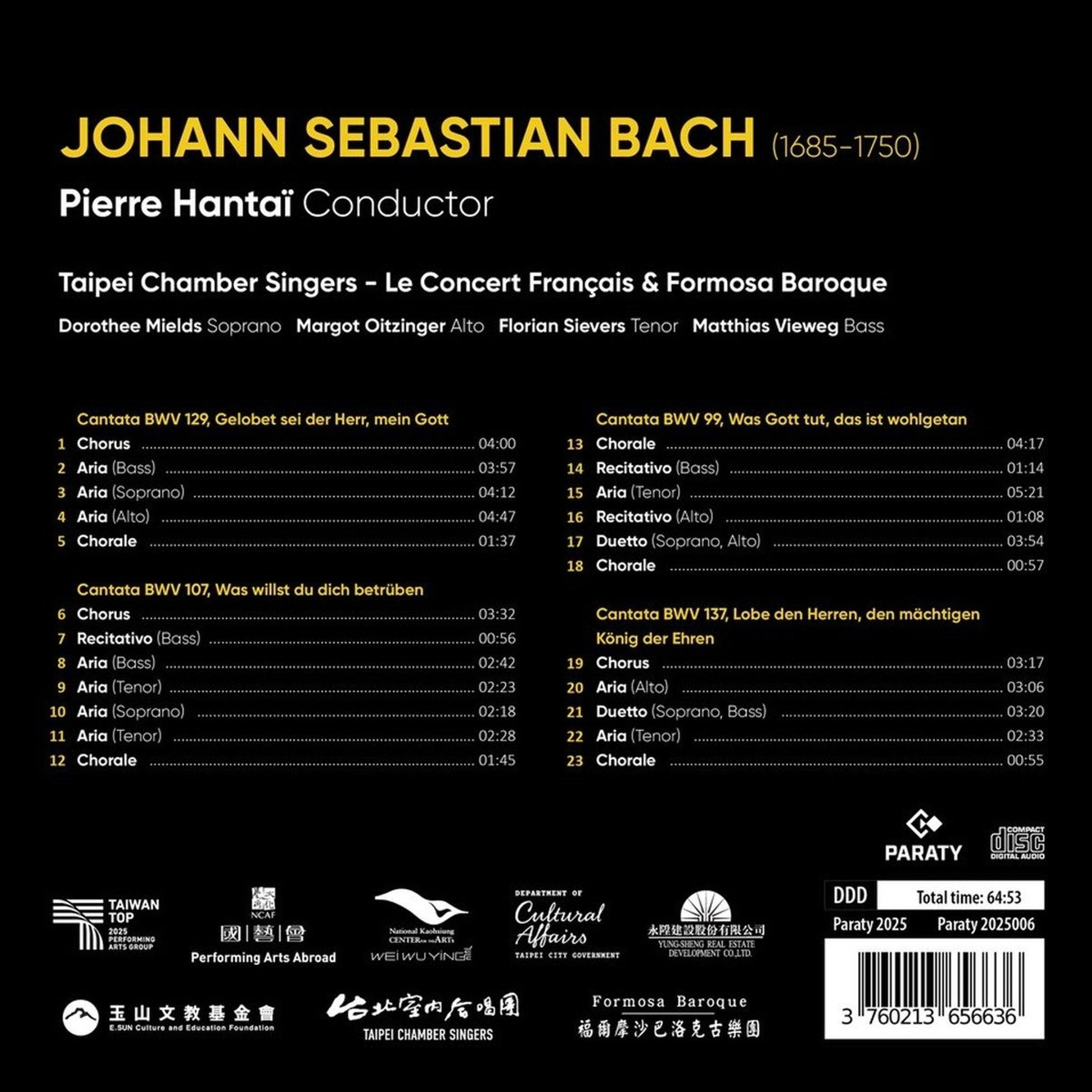 Soprano: Dorothee Mields [All]; Alto: Margot Oitzinger [BWV 129]; Bass: Matthias Vieweg [All]