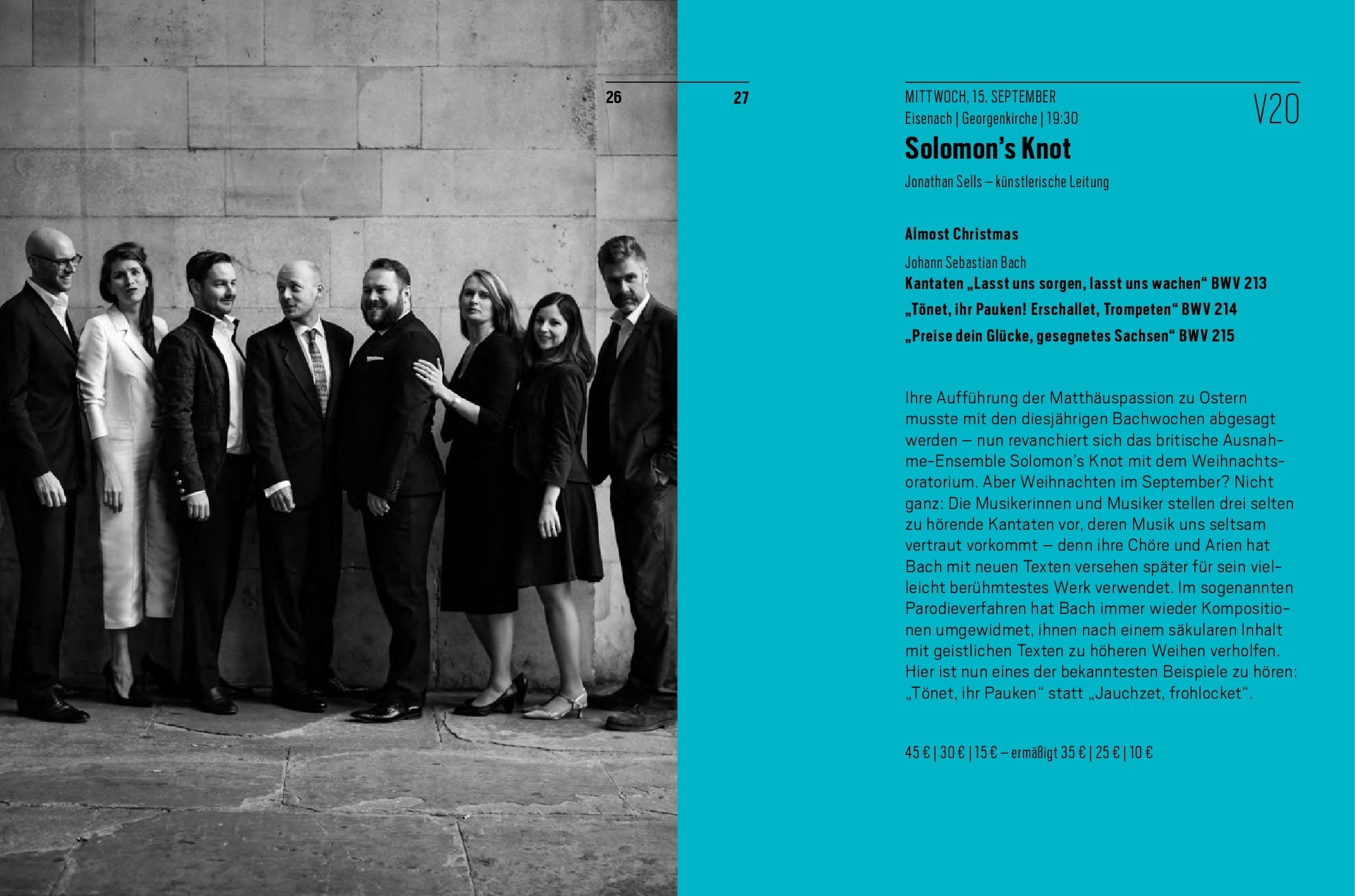 Sopranos: Zoë Brookshaw, Clare Lloyd-Griffiths; Altos: Kate Symonds-Joy, Michał Czerniawski; Tenors: Ruairi Bowen, Thomas Herford; Alexander Ashworth, Jonathan Sells [Artistic Director]