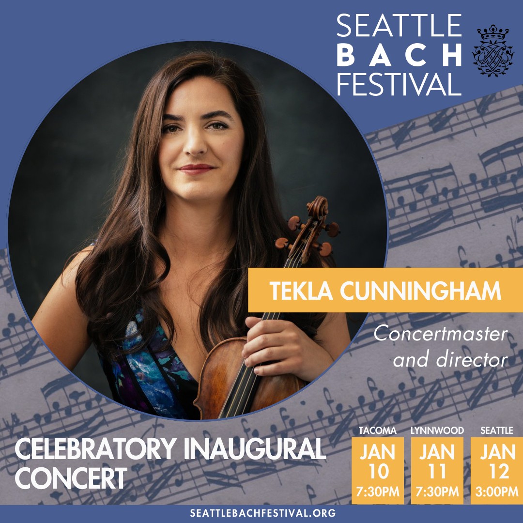 Seattle Bach Festival Orchestra: Tekla Cunningham [Concert-master], Christine Wilkinson Beckman, Cynthia Black, Eleanor Legault, Chloe Meyers, Brandon Vance, Byron Rakitzis (Baroque Violins); Stef Creswell & Lindsey Strand Polyak (Baroque Violas); William Skeen & Adaiha Macadam-Somer (Baroque Cello); RosGilliland (Baroque double-bass); John Lenti (Theorbo); Henry Lebedinsky (Organ & Harpsichord); Michael Kleinschmidt (Organ) [organ intro, Seattle]; Wyatt Smith [organ intro, Tacoma]; Debra Nagy & Curtis Foster (Baroque Oboe); Vicki Boeckman & Bryan Boehnke (Recorders); Kris Kwapis, Jens Jacobsen & Gordon Ullman (Baroque Trumpets); Mark Goodenberger (Timpani) |