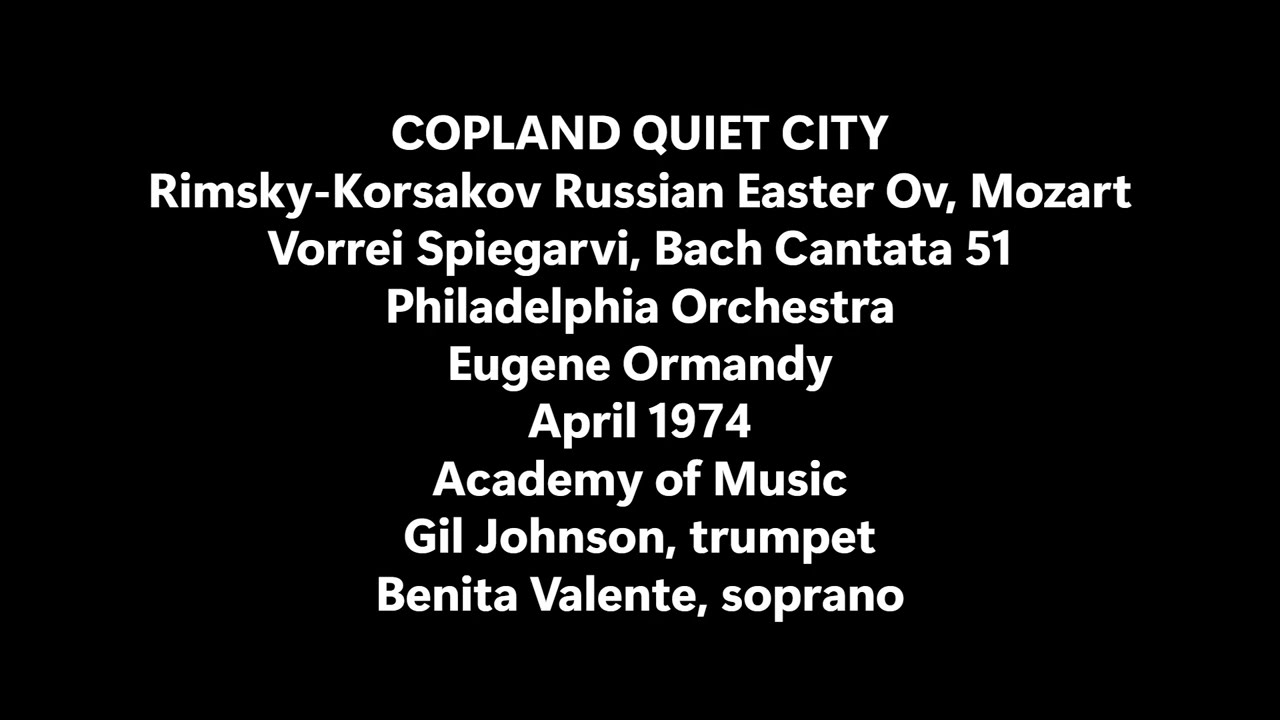 The Philadelphia Orchestra: Subscription Concert 1973-1974, Week 25 (R-K Russ E Ov Mozart Vorrei Copland Quiet Johnson Bach Cant 51) |